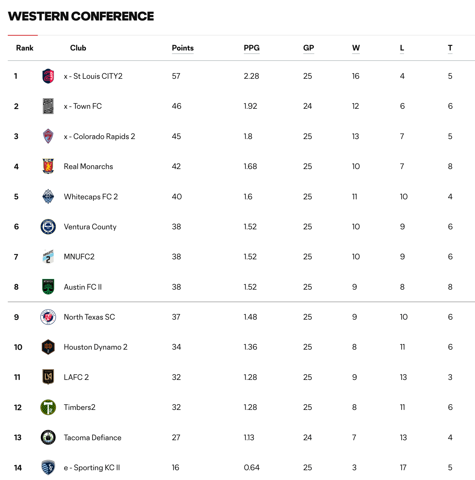 Western Conference Standings