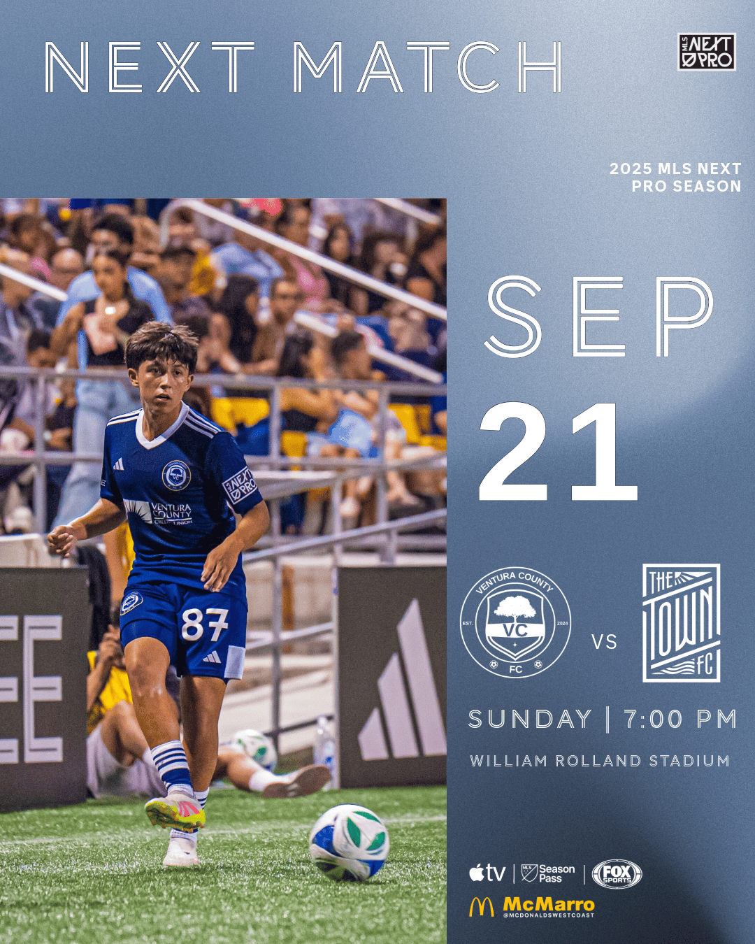To celebrate this Sunday’s Coastal Clash against our Southern California rivals, The Town FC, Ventura County FC is joining forces with our front-of-shirt sponsor to give back to the community that stands behind us. This special matchup is more than just a game — it’s a showcase of local pride, culture, and passion, bringing fans together in the heart of Ventura County. With music, energy, and top-level soccer on display at William Rolland Stadium, we’re making it a day to remember as we thank our supporters for being the driving force behind VCFC.